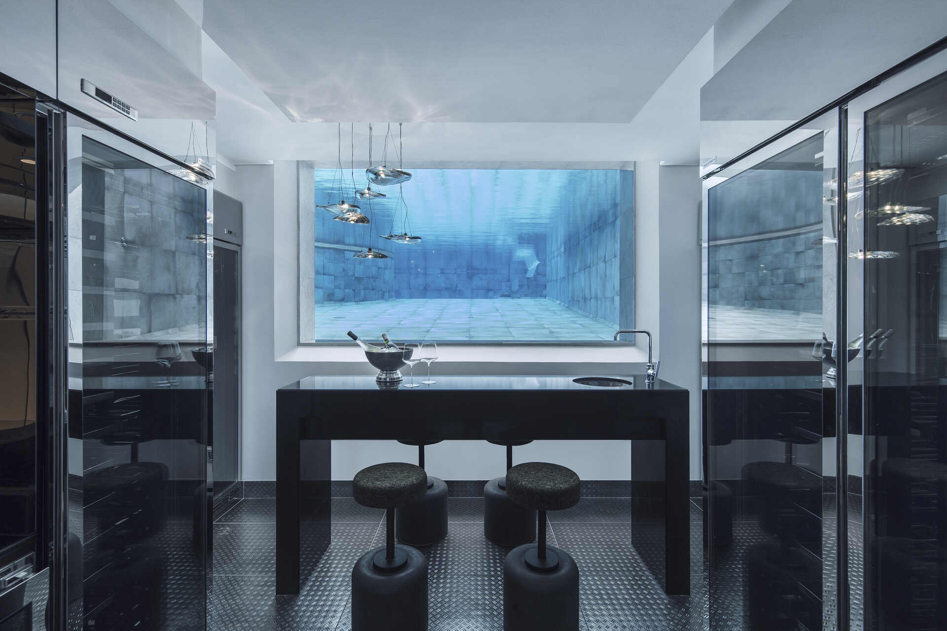 - Sirotez un verre de vin dans la cave à vin sous-marine