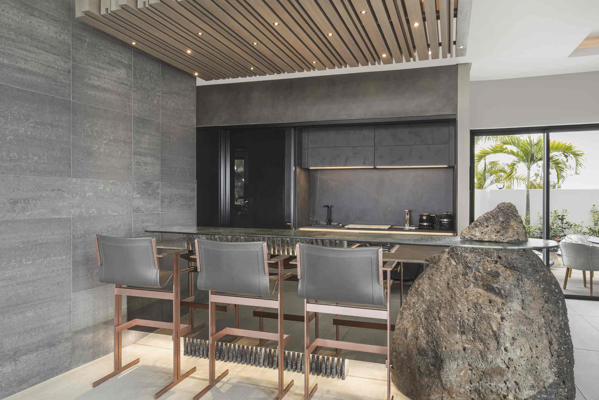 L'espace de vie de cette villa privée définit le luxe et la modernité avec sa cuisine ouverte ultramoderne et entièrement équipée, une salle à manger/salon spacieuse et fonctionnelle qui s'étend jusqu'à la terrasse et un espace barbecue sur la terrasse près de la piscine.